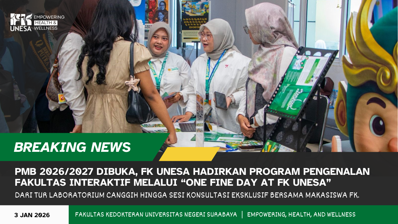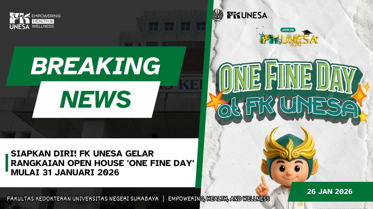fk.unesa.ac.id., SURABAYA - Fakultas Kedokteran Universitas Negeri Surabaya (FK UNESA) resmi mengumumkan rangkaian kegiatan sosialisasi bagi calon mahasiswa baru tahun akademik 2026/2027. Mengusung tema "One Fine Day at FK UNESA", kegiatan ini diranc