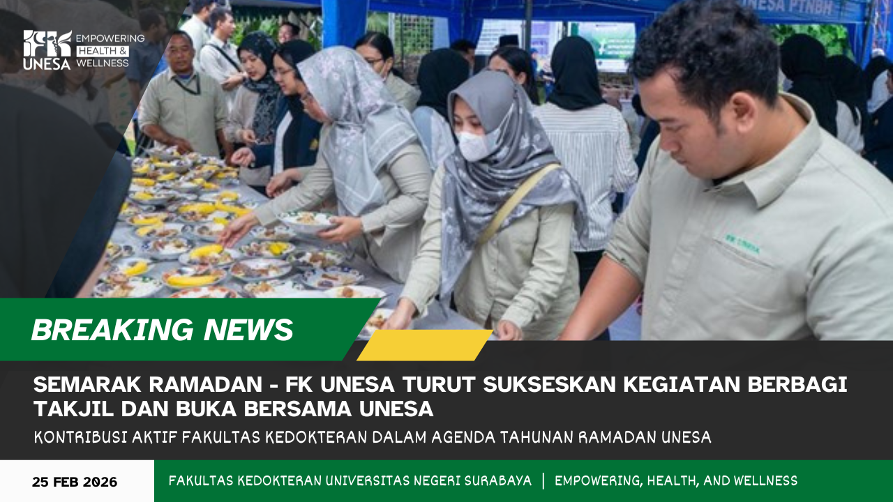 fk.unesa.ac.id., SURABAYA - Fakultas Kedokteran Universitas Negeri Surabaya (FK UNESA) turut ambil bagian dalam kegiatan berbagi takjil dan buka bersama yang diselenggarakan oleh UNESA pada 24 Februari 2026. Jajaran pimpinan, dosen, tenaga kependidik