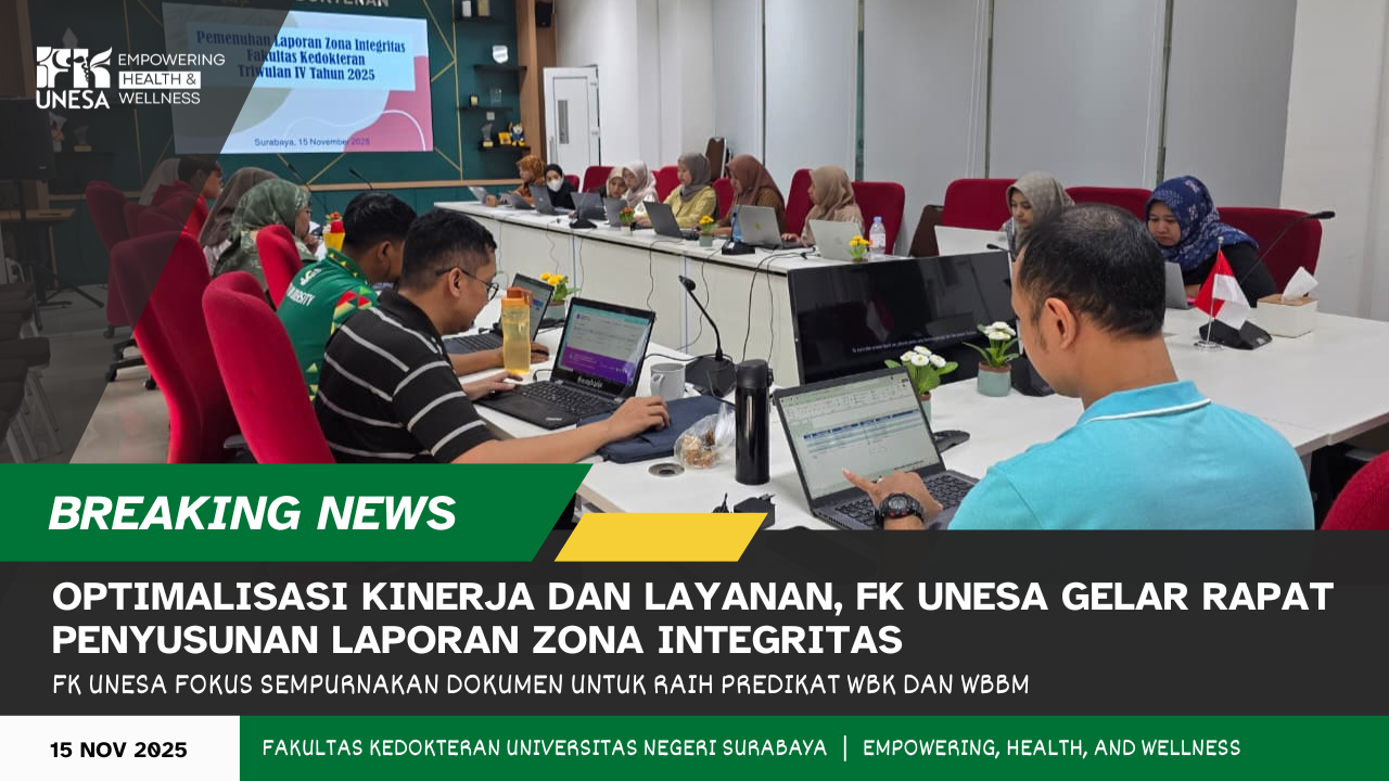 fk.unesa.ac.id., SURABAYA - Fakultas Kedokteran Universitas Negeri Surabaya (FK Unesa) menyelenggarakan Rapat Pemenuhan Laporan Zona Integritas pada Sabtu, 15 November 2025. Kegiatan ini merupakan langkah strategis dalam memperkuat keseriusan fakulta