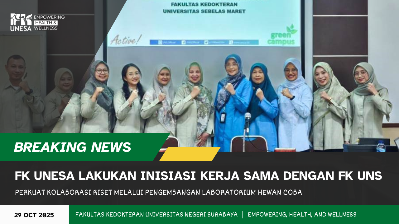 fk.unesa.ac.id., SURABAYA – Fakultas Kedokteran Universitas Negeri Surabaya (FK UNESA) melakukan kunjungan dan inisiasi kerja sama dengan Laboratorium Hewan Coba Fakultas Kedokteran Universitas Sebelas Maret (FK UNS) pada Selasa, 28 Oktober 2025. K
